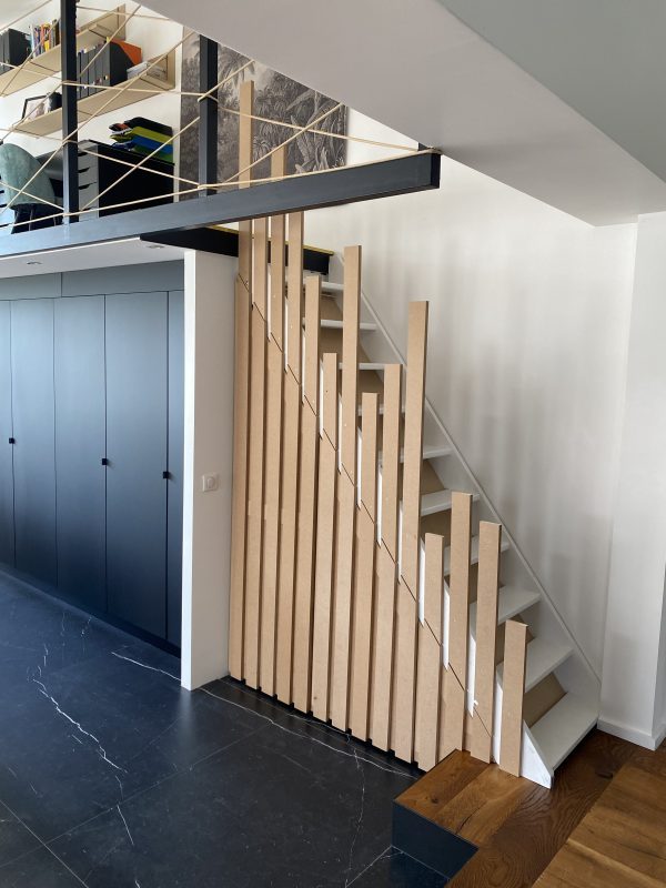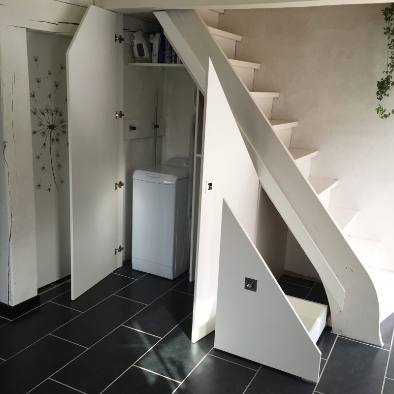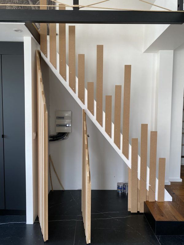 Optimisez l’espace sous vos escaliers pour des rangements en bois adapté au design de votre habitat.
